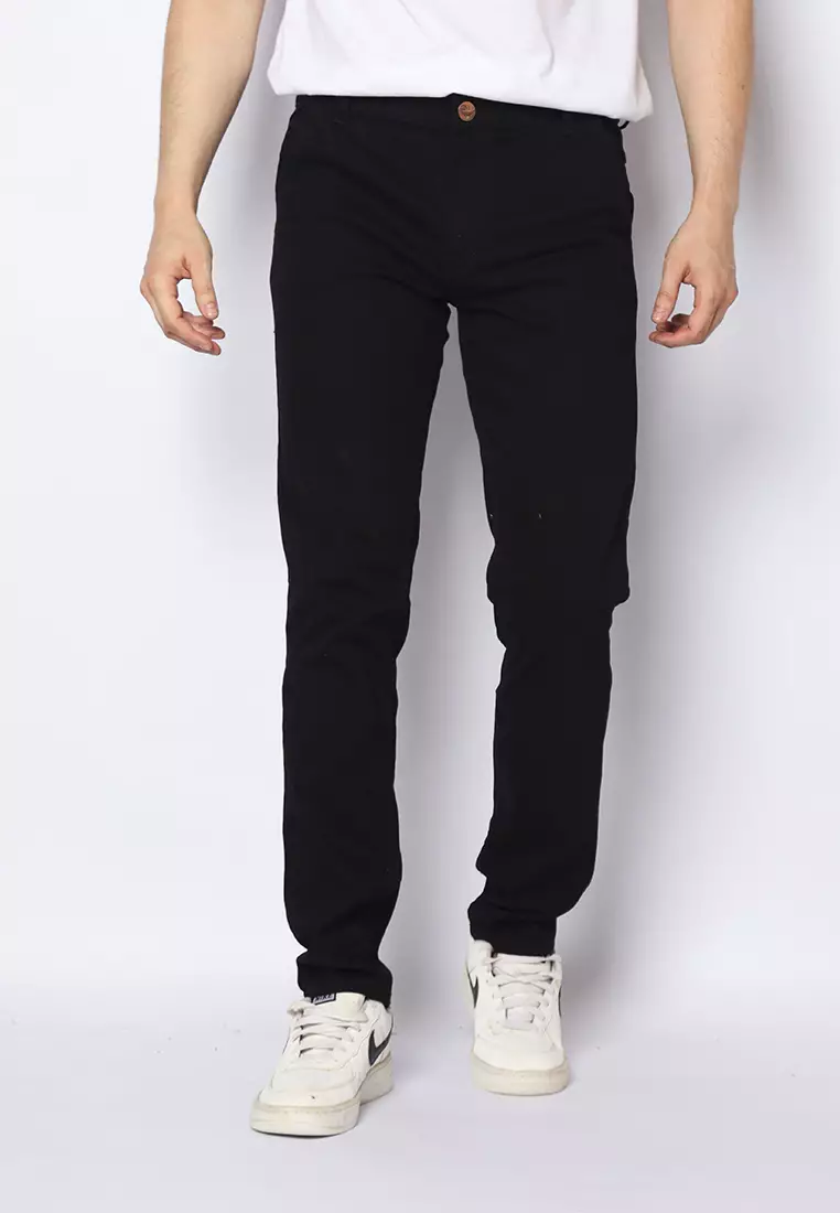 2nd RED Celana Panjang Pria Katun Chinos Slim Fit Cheers Mate Hitam 112501