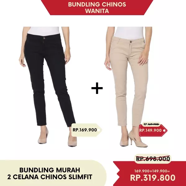 2nd RedBundling Fortune Celana Panjang Wanita Chinos Slim Fit Tebal Melar Soft Black and Khaki599900.00329900.00