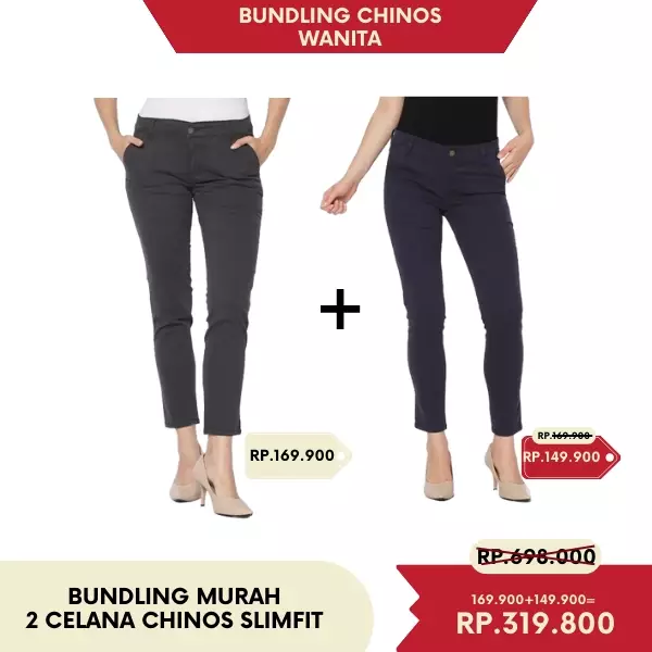 2nd RedBundling Fortune Celana Panjang Wanita Chinos Slim Fit Tebal Melar Soft Grey & Navy599900.00329900.00