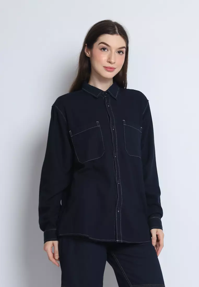 2nd RedKemeja Denim Wanita Skena L/S Krah Mandarin Saku Besar 282405399900.00164900.00