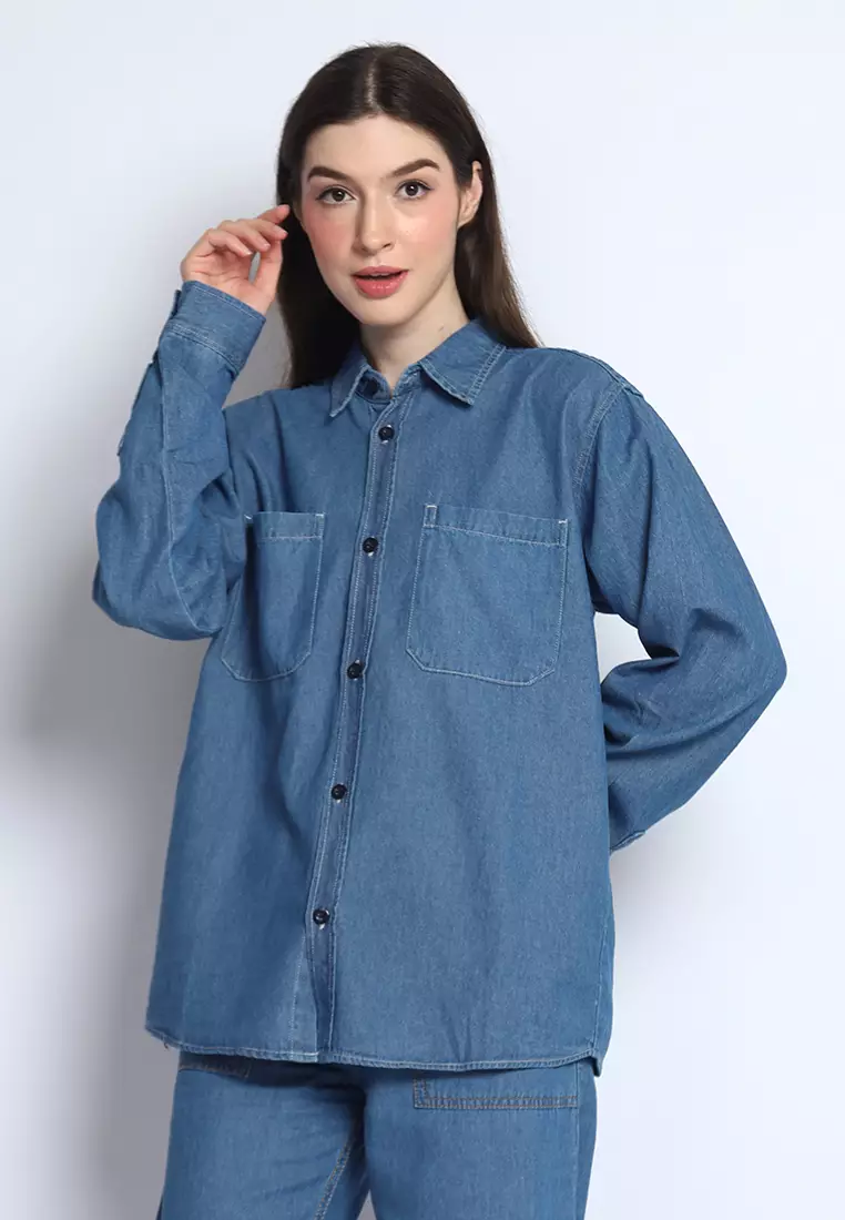 Kemeja Denim Wanita Skena L/S Krah Mandarin Saku Besar 282407