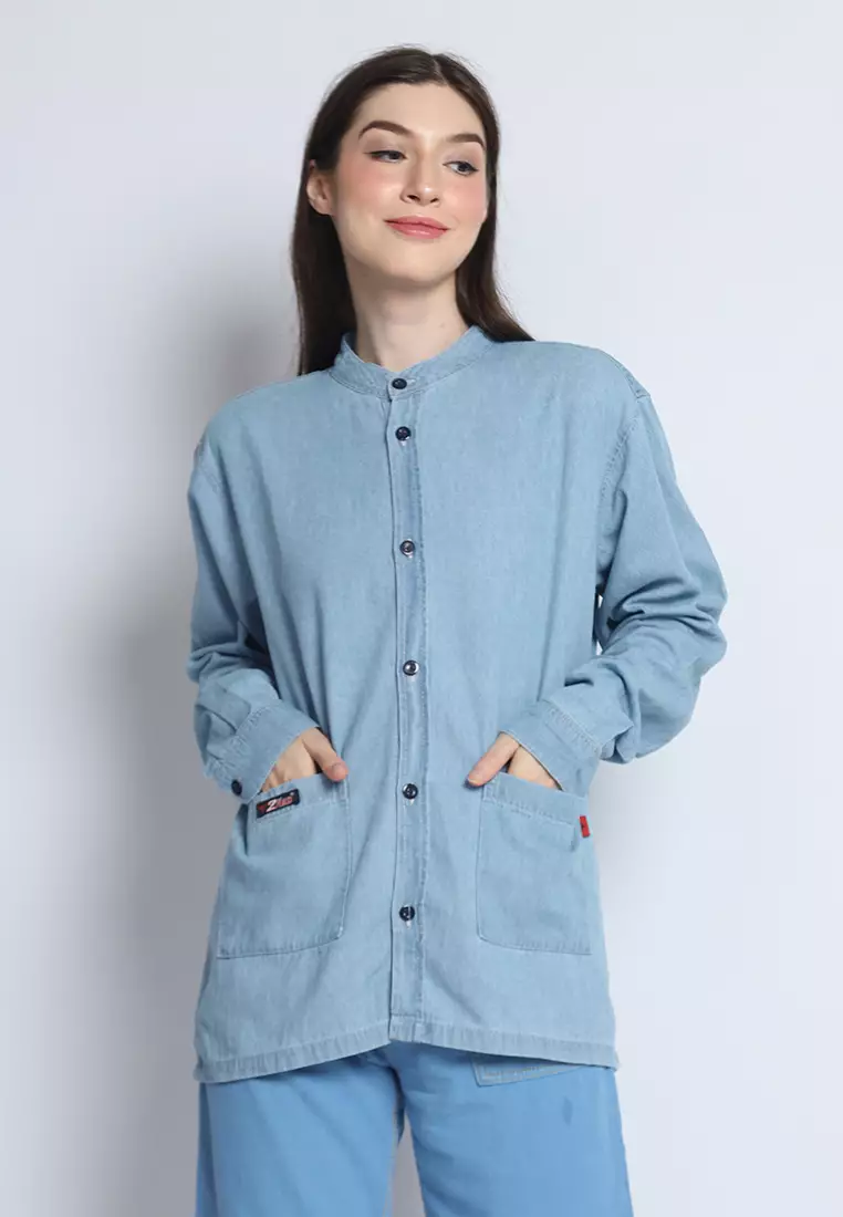 Kemeja Denim Wanita Skena L/S Krah Mandarin Saku Besar 282408