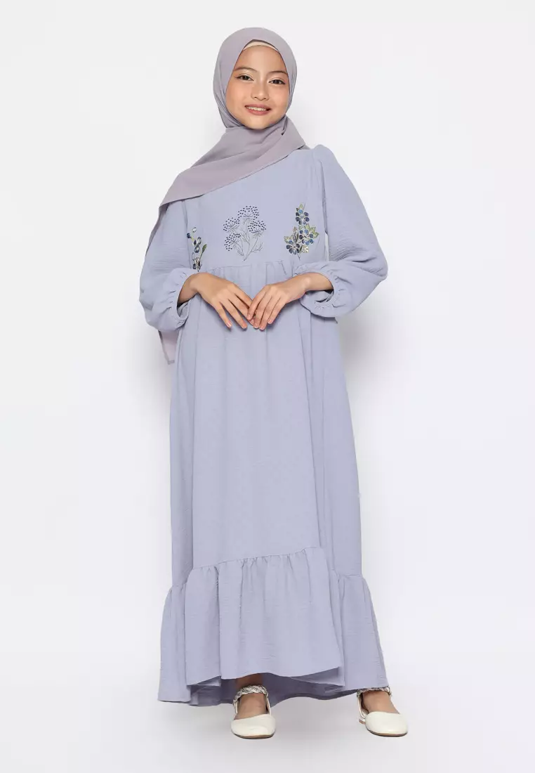 Baju Gamis Anak Perempuan Putik Bunga Blue - ADORABLE