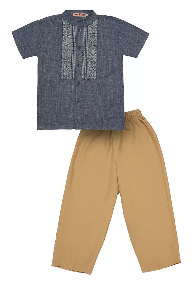 Baju Koko Anak Laki Bordir Grafik Navy Setelan - NOBLE