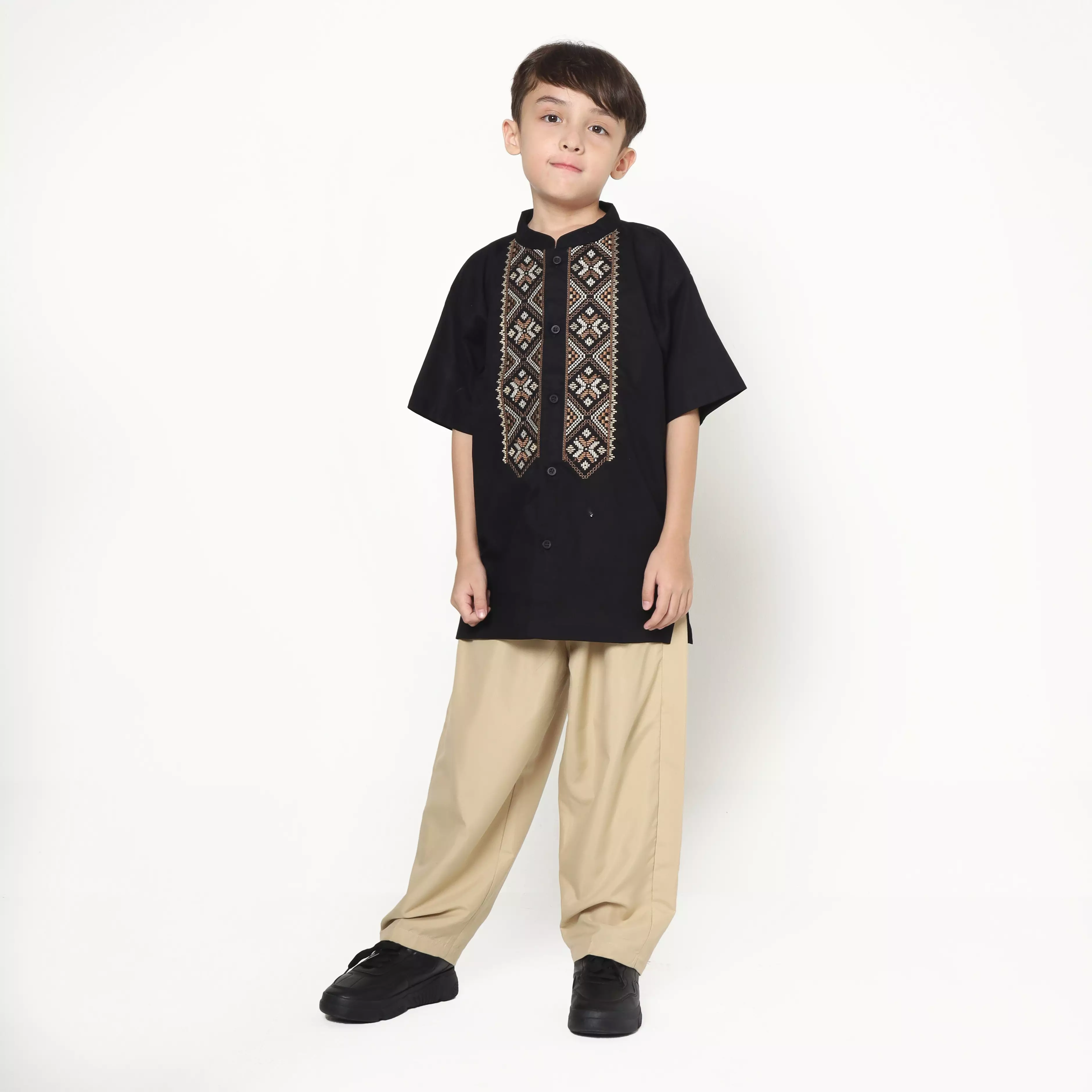 Baju Koko Set Anak Laki Bordir Bintang Black - AMAZING