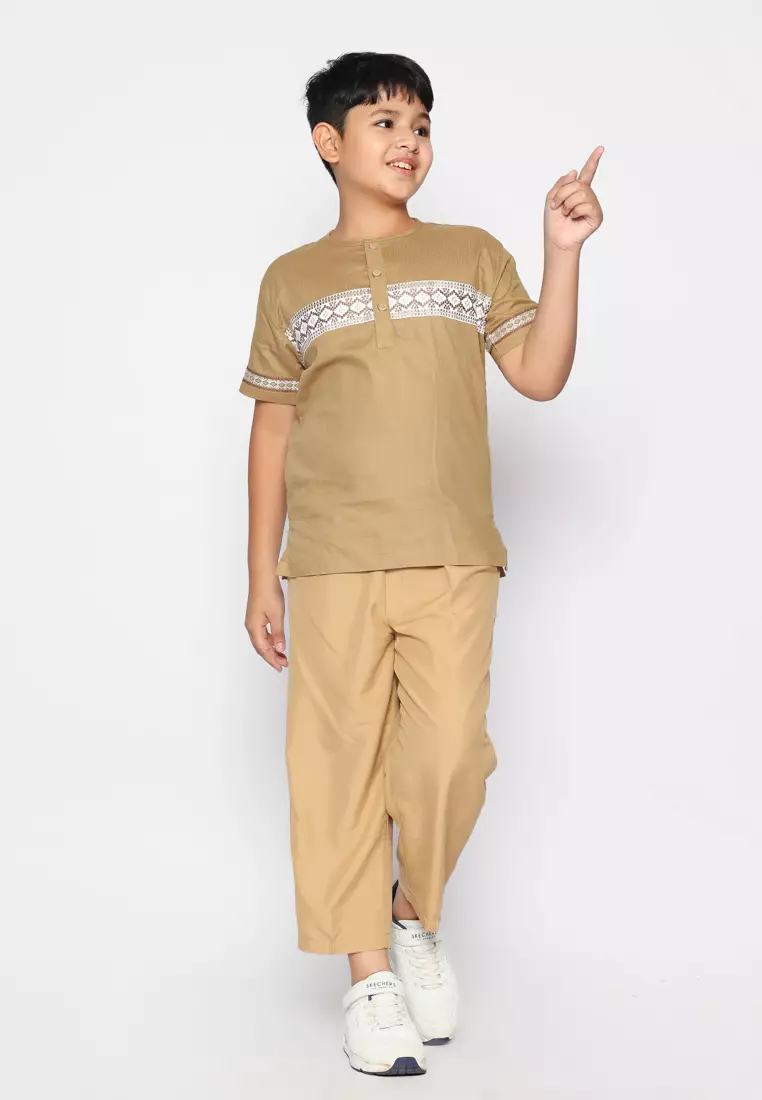 Baju Koko Set Anak Laki Bordir Lentera Brown - GENUINE