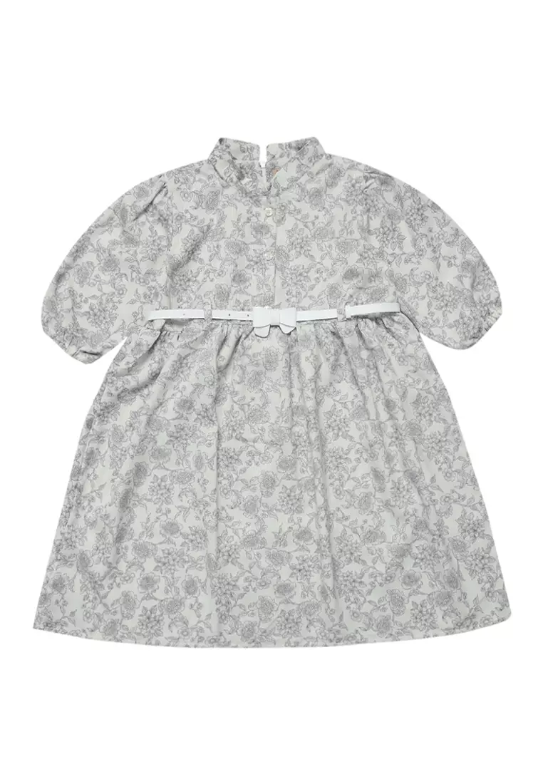 Dress Anak Perempuan Bunga Abu With Belt - CUTE