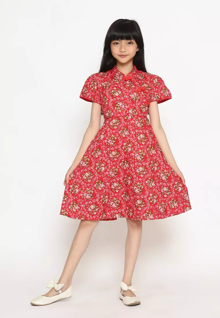 Dress Anak Perempuan Kerah Mandarin Bunga Red - CUTE
