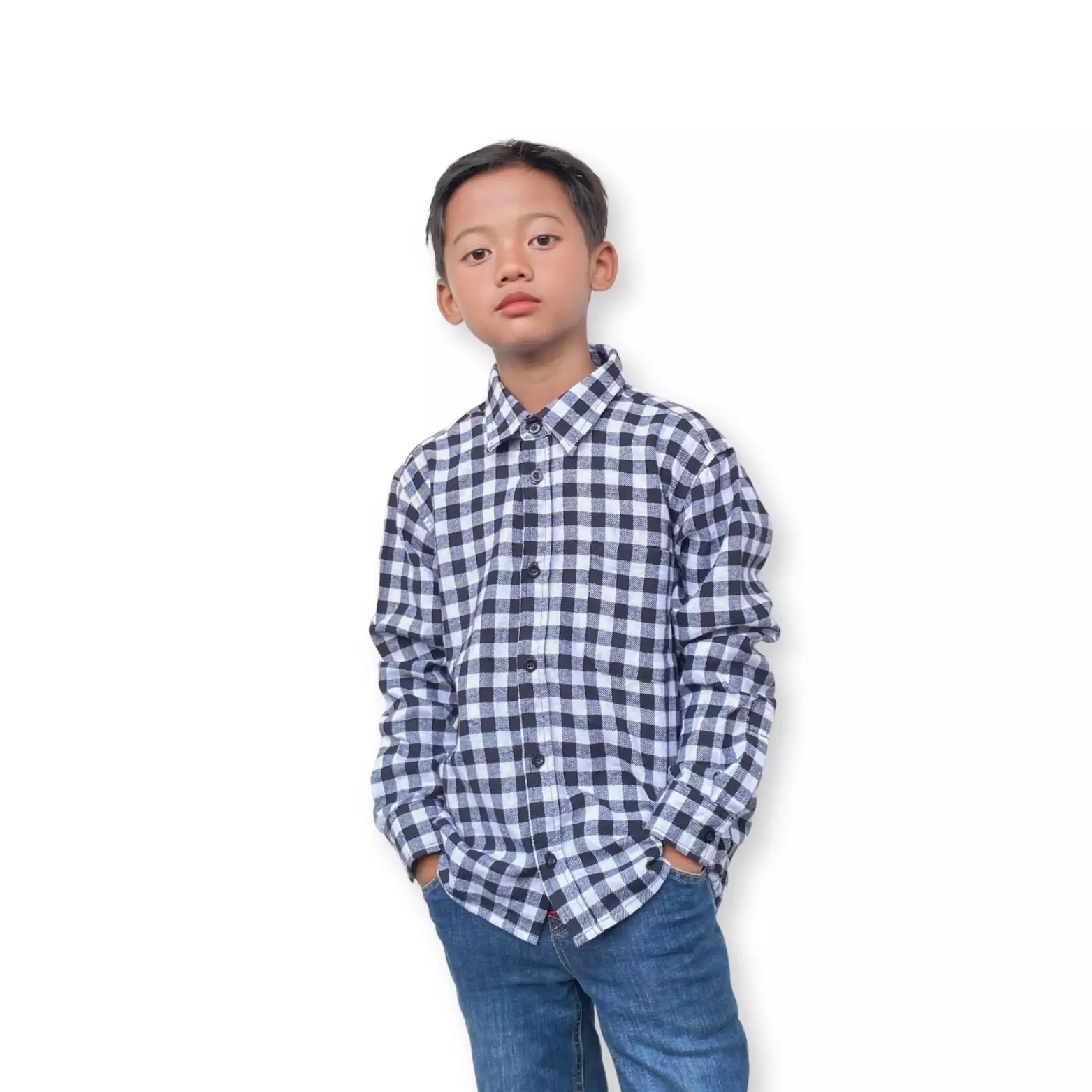 Kemeja Lengan Panjang Anak Laki Kotak Hitam Putih Flannel - AWESOME