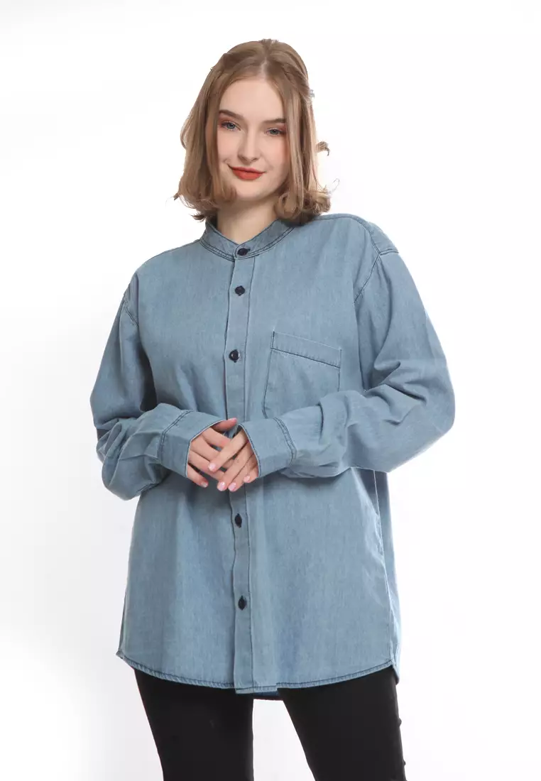 - Leher: Kerah Mandarin