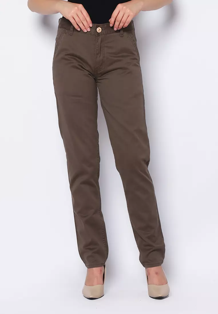 Twill Celana Panjang Wanita Slim Fit Cheerful Coklat 222505