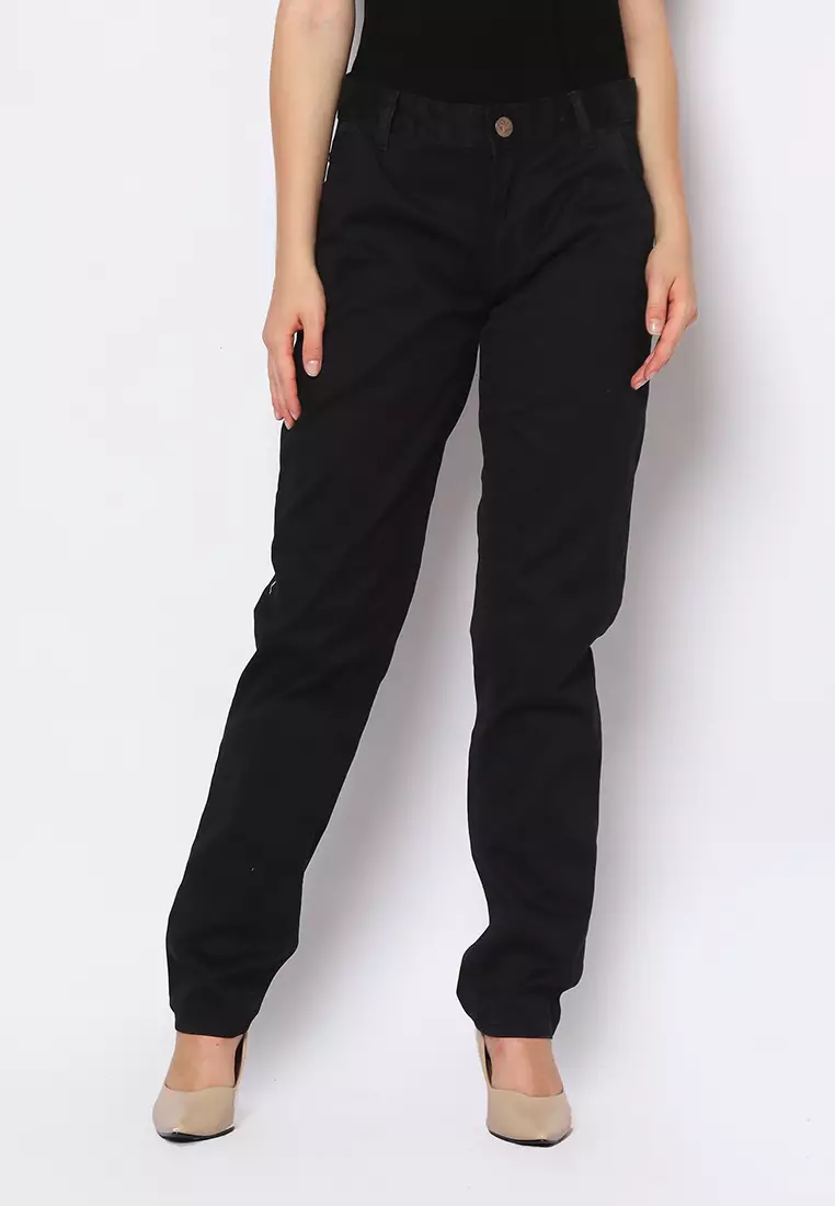 Twill Celana Panjang Wanita Slim Fit Cheerful Hitam 222501