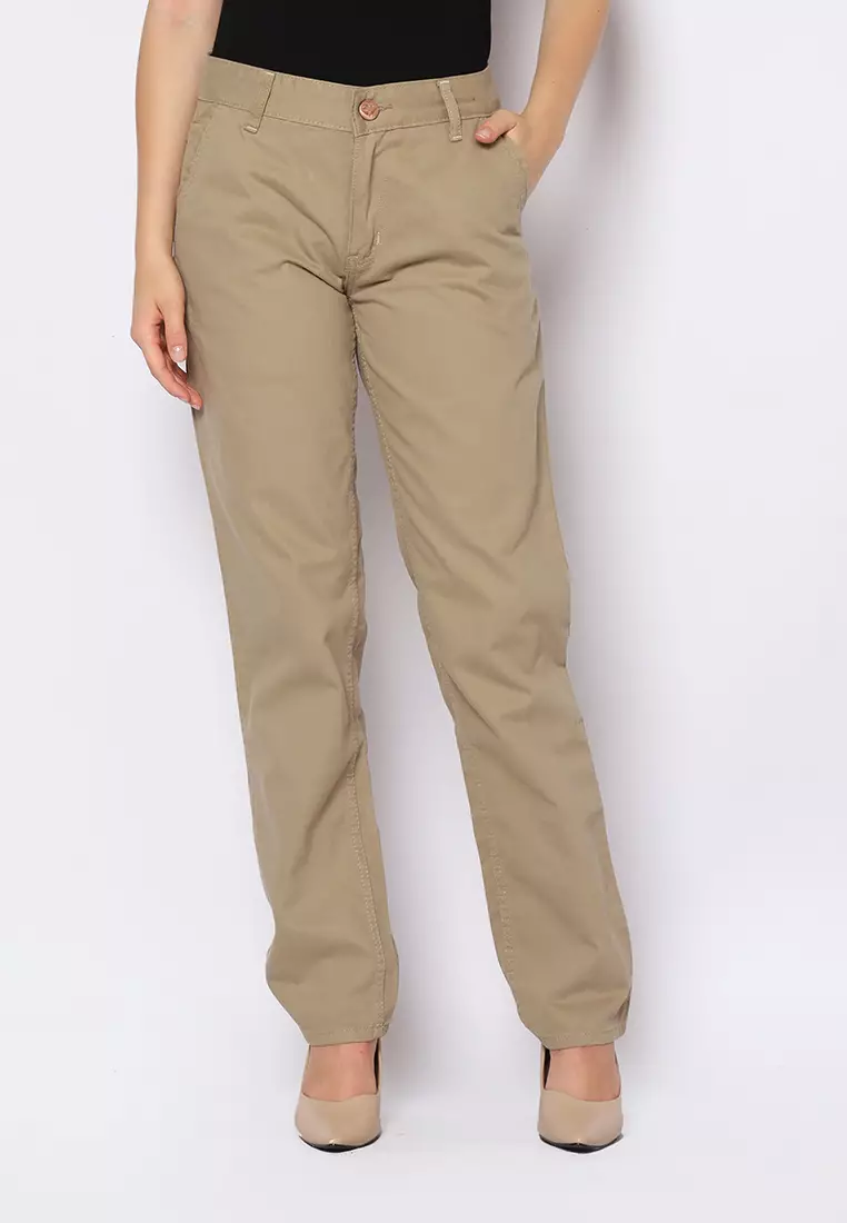 Twill Celana Panjang Wanita Slim Fit Cheerful Khaki 222507