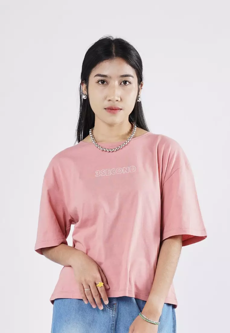 3Second Women's Basic T-Shirt Short Sleeve Boxy Fit Cotton Logo Script 3 OL-C070925