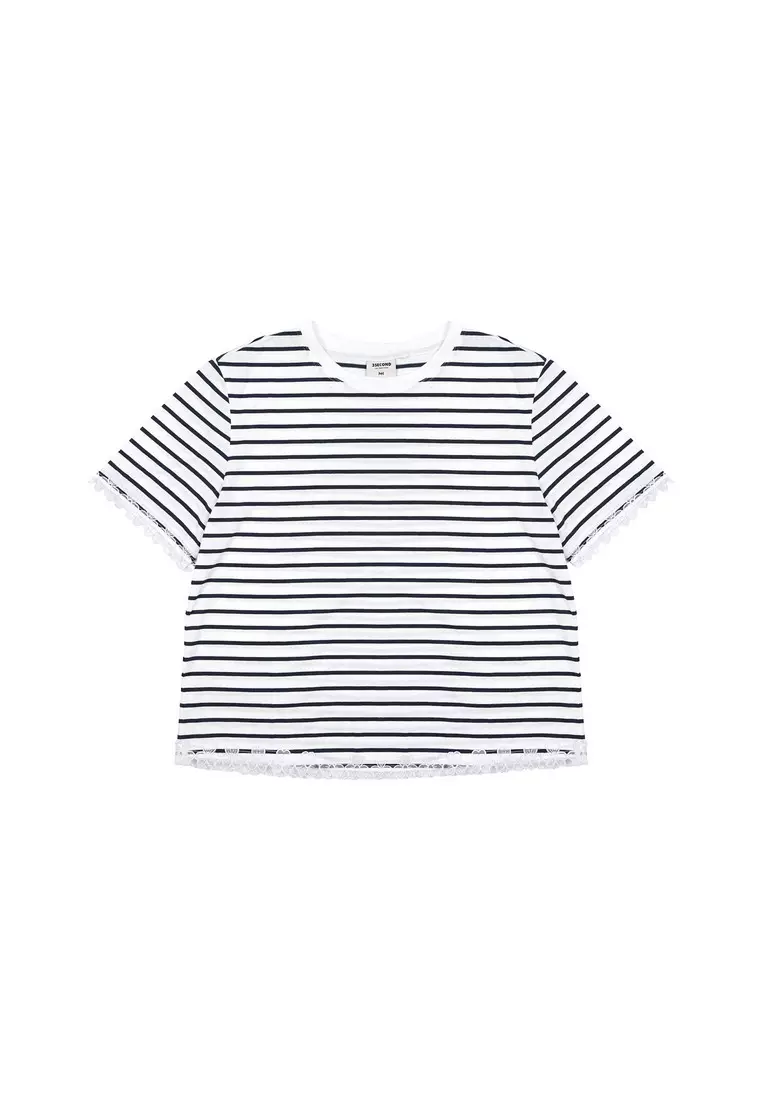 3SECOND3Second Women's Stripe T-Shirt Short Sleeve Boxy Fit Lace Charlotte HP-C100126159000.00151050.00