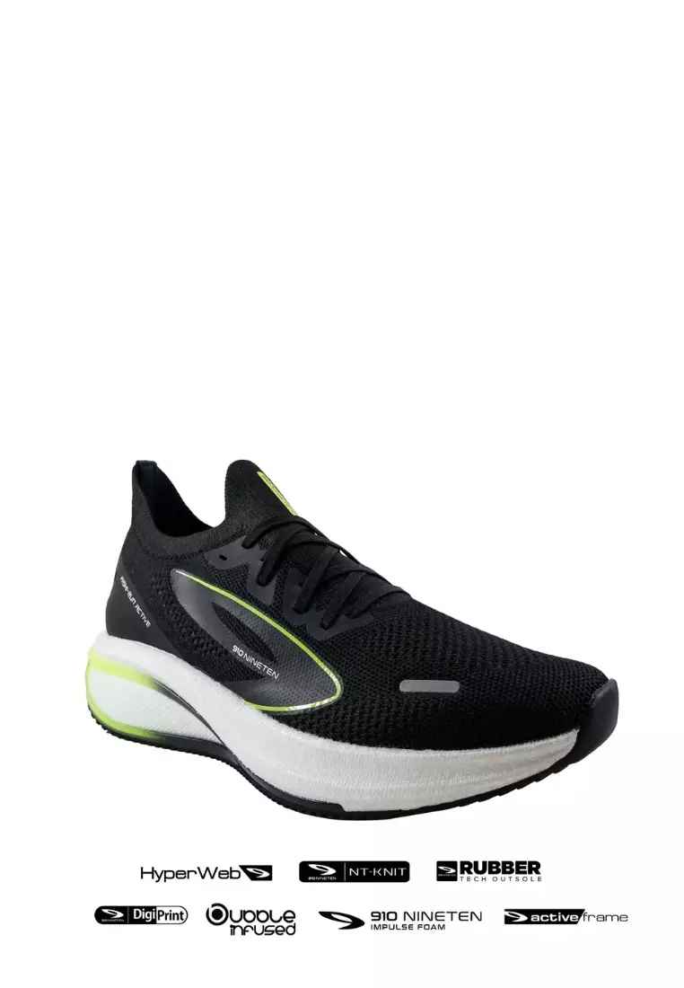 910 Nineten Kishi-Run Active Sepatu Lari - Hitam/Hijau-neon