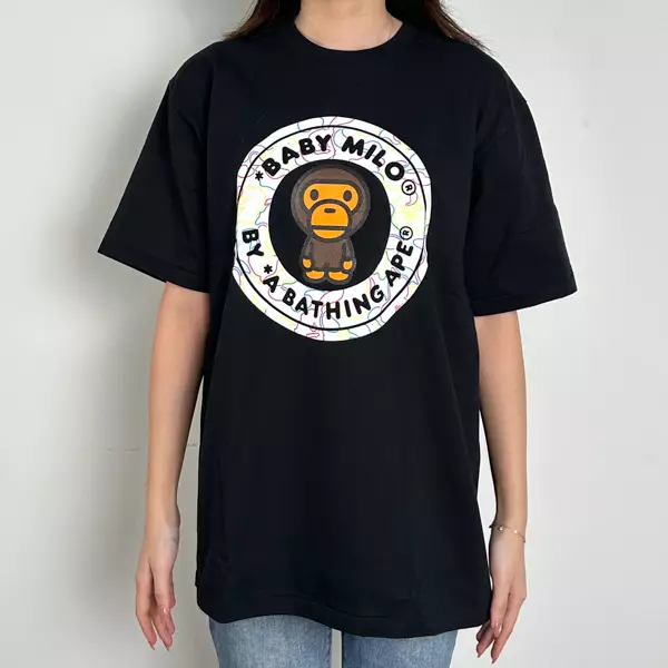 Kaos BAPE X BABY MILO CIRCLE OUTLINE CAMO MULTI WHITE BLACK TSHIRT 100% ORIGINAL