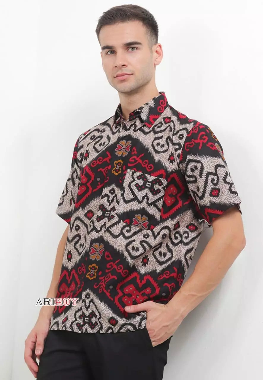Songtrawira Maron Kemeja Batik Pria Premium Slimfit Lengan Pendek NLN