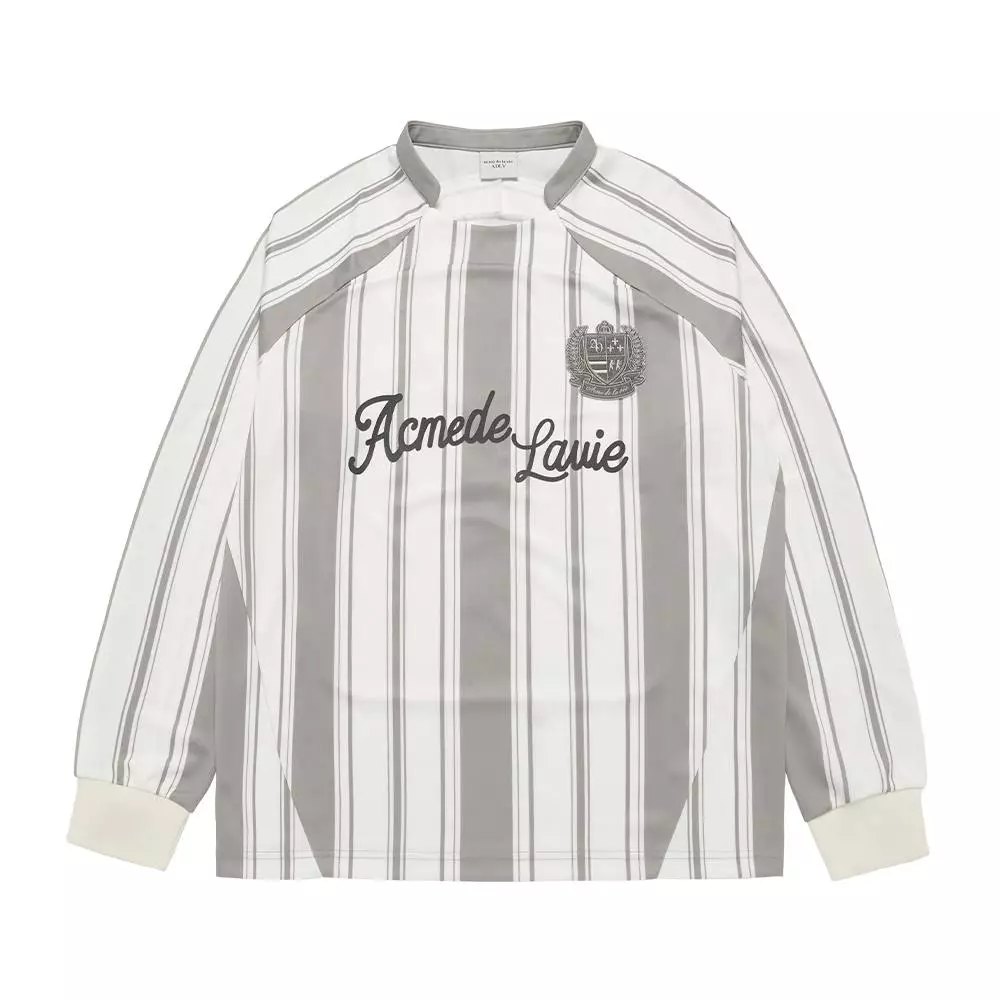 STRIPE FOOTBALL JERSEY LONG SLEEVE T-SHIRT LIGHT GRAY