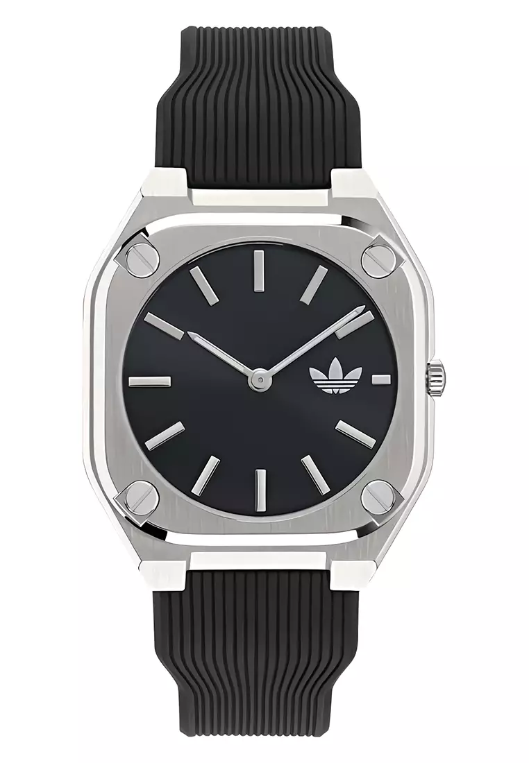 Adidas Gents Watch City Tech Thin - Stainless Steel Case - Black Silicone Strap - AOFH24002