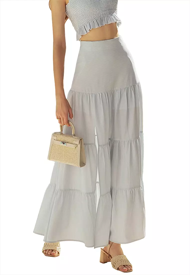 Striped Tiered Maxi Skirt