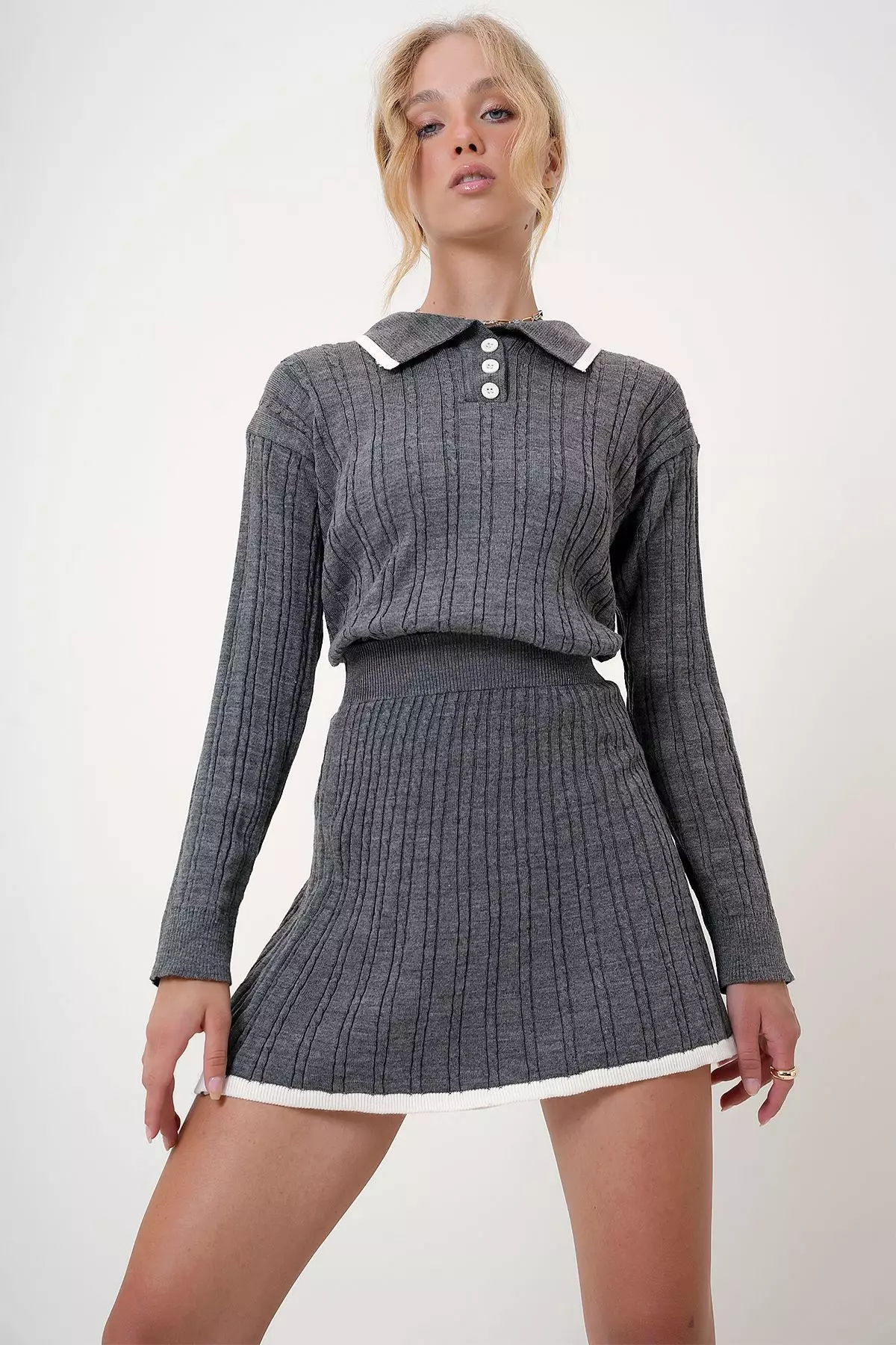 AlacatiPolo Collar Knitwear Sweater and Skirt Set859000.00687200.00