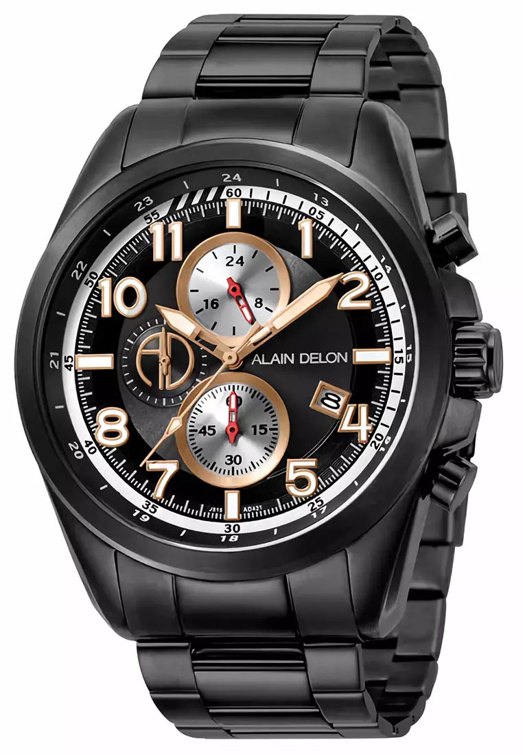 Alain Delon - Jam Tangan Chronograph Pria - Black - Stainless Steel Bracelet - AD420-1735