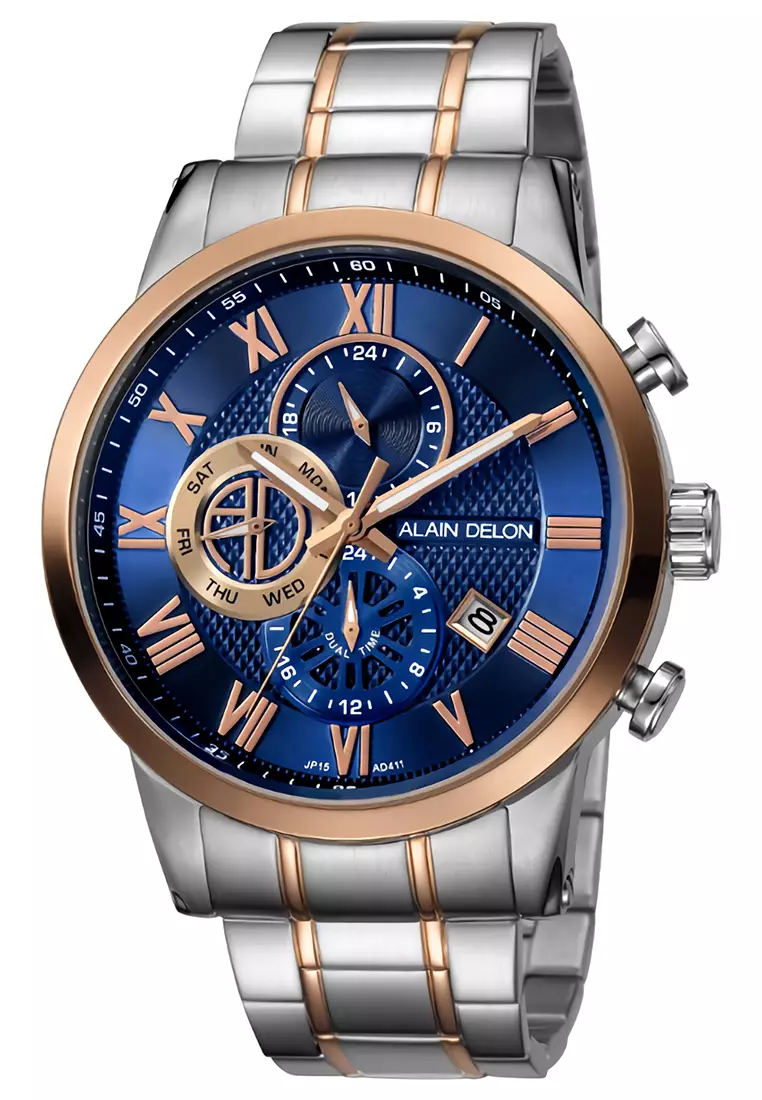 Alain Delon - Jam Tangan Chronograph Pria - Silver Blue - Stainless Steel Bracelet - AD412-1681C