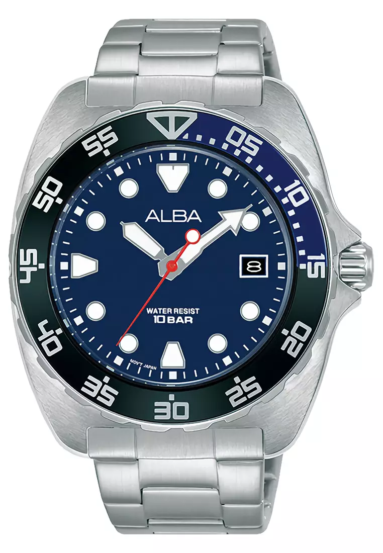 Alba Active - Jam Tangan Analog Pria - Silver Blue - Stainless Steel Bracelet - AS9M91X1