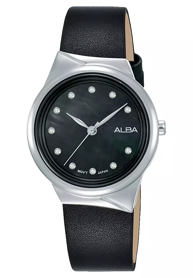 Alba - Jam Tangan Analog Wanita - Silver - Black Leather Strap - AH8625X1