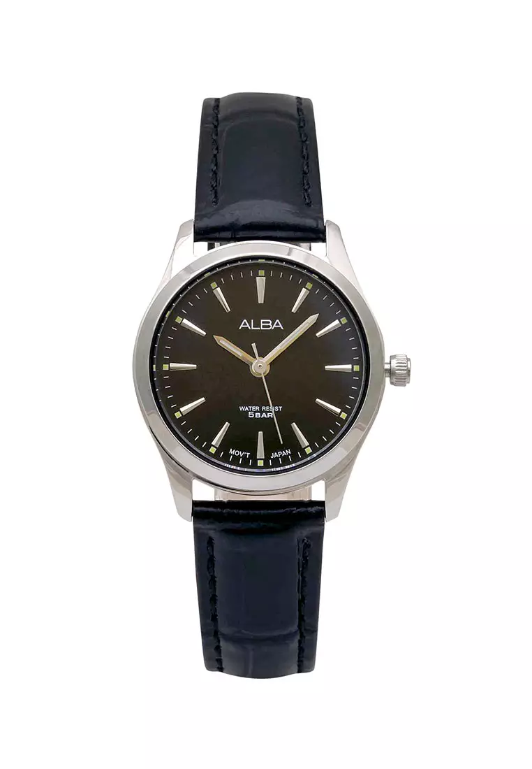 Alba Jam Tangan Wanita - Black Silver - Leather Strap - ARX139