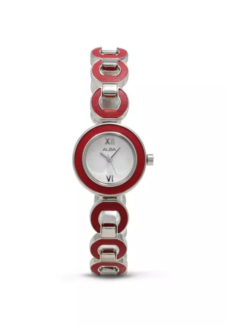Jam Tangan Alba Ladies AC3P07 Strap Stainless Steel Red-Silver
