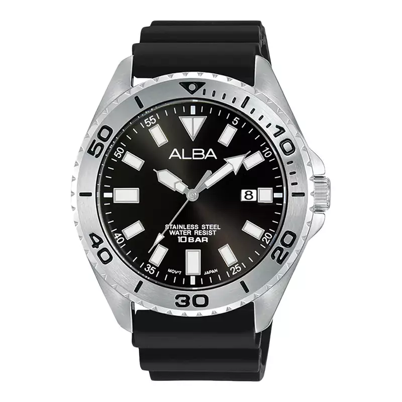 Jam Tangan Pria Alba Active AS9Q49X1 Men Black Dial Black Rubber Strap