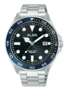 Jam Tangan Pria Alba Active AS9V57 AS9V57X1 Strap Stainless Steel Silver Color Men Black Dial Watch Original Garansi Resmi