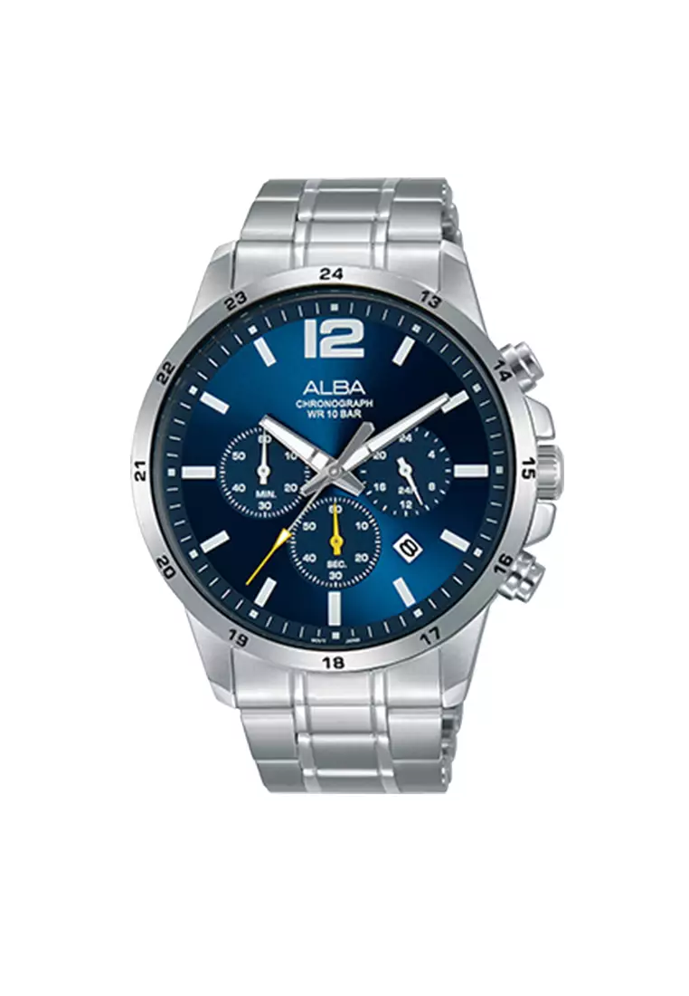 Jam Tangan Pria Alba Active Original Garansi Resmi AT3E83 AT3E83X1 Strap Stainless Steel Silver Chronograph