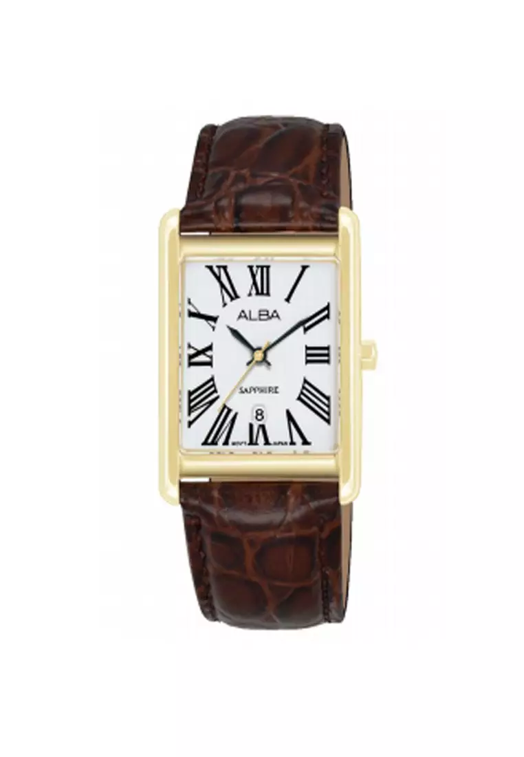 Jam Tangan Pria Alba AH7ET4 AH7ET4X1 Strap Leather Brown Color Men White Dial Original Garansi Resmi