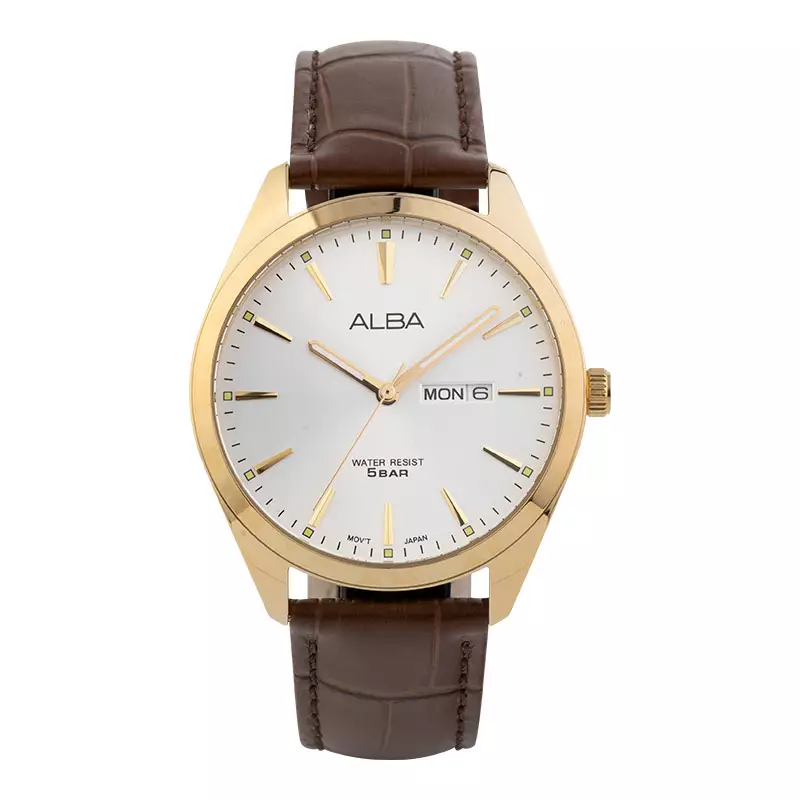 Jam Tangan Pria Alba AJ6198X1 Men Silver Dial Brown Leather Strap
