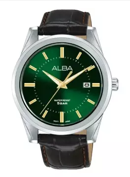 Jam Tangan Pria Alba AS9V69 AS9V69X1 Strap Leather Brown Color Men Green Dial Watch Original Garansi Resmi