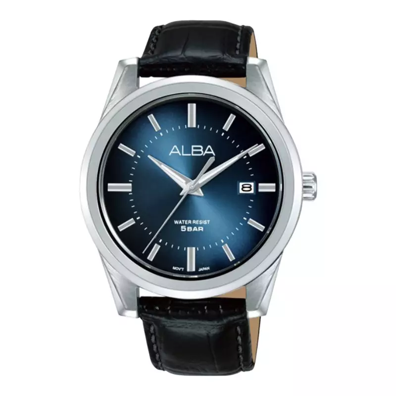 Jam Tangan Pria Alba AS9V71X1 Men Blue Dial Black Leather Strap