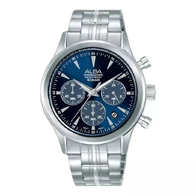 Jam Tangan Pria Alba AT3K51X1 Men Chronograph Blue Dial Stainless Steel Strap