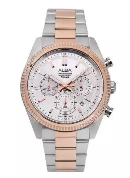 AlbaJam Tangan Pria Alba Chronograph AT3K14 AT3K14X1 Strap Stainless Steel Dual Tone Color Men Silver Dial Original Garansi Resmi3015000.001521000.00