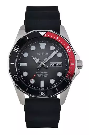 Jam Tangan Pria Alba Mechanical AL4539-2 AL4539-2X1 Automatic Strap Rubber Black Color Men Grey Black Gradation Dial Original Garansi Resmi