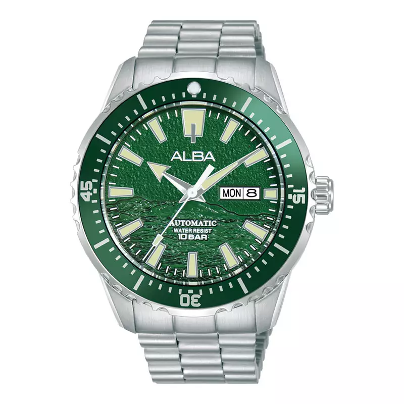 Jam Tangan Pria Alba Mechanical AL4737X1 Automatic Men Green Dial Stainless Steel Strap