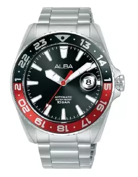 AlbaJam Tangan Pria Alba Mechanical AU4073 AU4073X1 Strap Steinless Steel Silver Color Men Black Dial Automatic Series Watch Original Garansi Resmi3786000.001646000.00