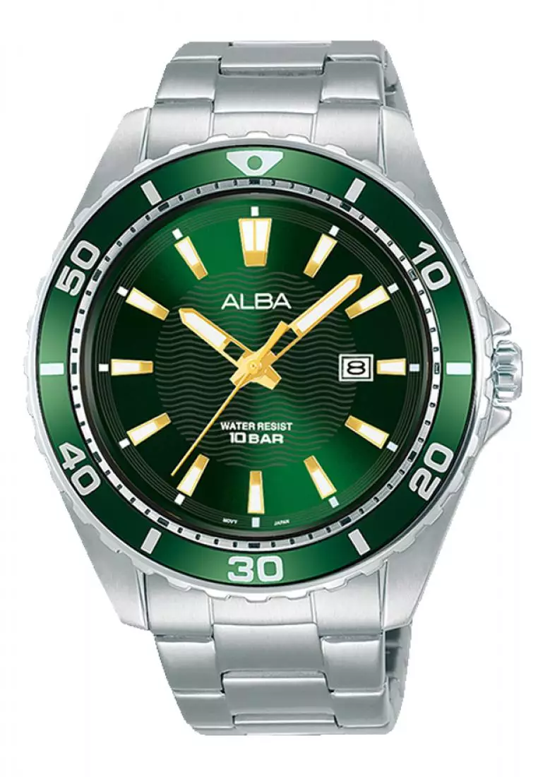 AlbaJam Tangan Pria Alba Original Garansi Resmi AG8L21 AG8L21X1 Strap Stainless Steel Silver Green patterned Dial1500000.00707000.00