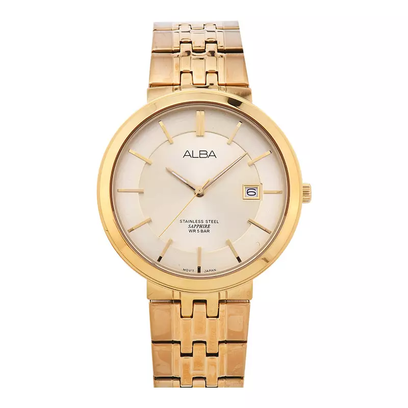 Jam Tangan Pria Alba Prestige AS9D74X1 Men Champagne Dial Gold Stainless Steel Strap