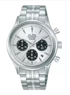 AlbaJam Tangan Pria Alba Prestige AT3K55 AT3K55X1 Strap Stainless Steel Silver Color Men White Black Dial Chronograph Feature Watch Original Garansi Resmi2256000.001146000.00