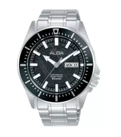 Jam Tangan Pria Alba Sport AL4717 AL4717X1 Strap Stainless Steel Silver Automatic Black Silver Motif Dial Silver Black Color