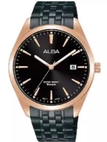 Jam Tangan Pria Classic Alba AS9Q90 AS9Q90X1 Strap Stainless Steel Black Color Case Brown Gold Black Dial