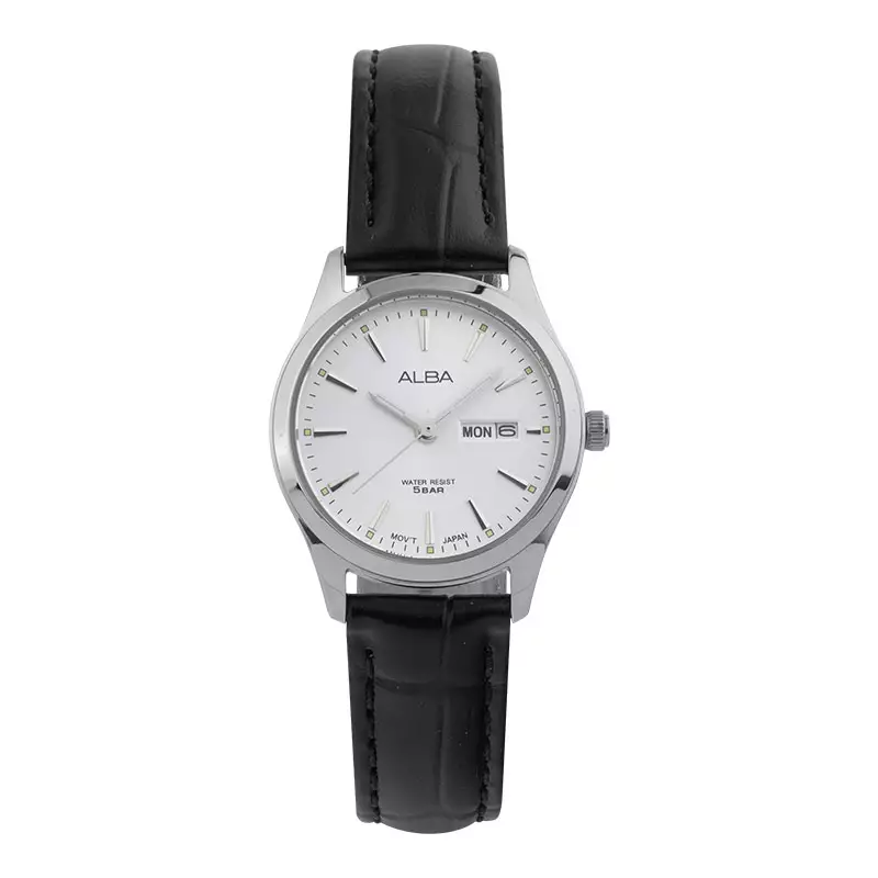Jam Tangan Wanita Alba AN8089X1 Ladies Silver Dial Black Leather Strap